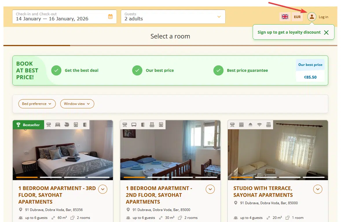 Для того чтобы ночи стали накапливаться, обязательно войдите в свой аккаунт на форме бронирования до совершения бронирования.